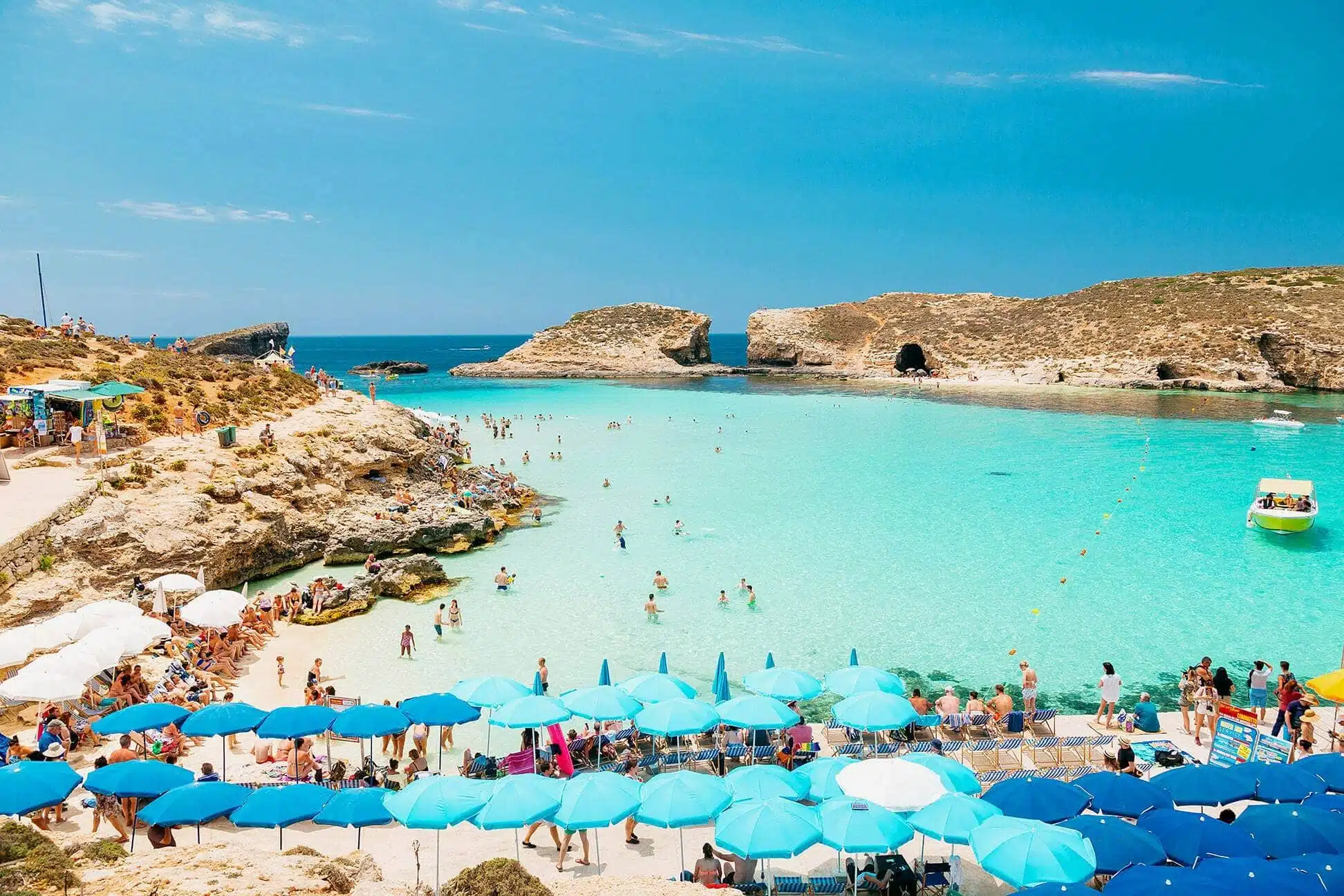 La primera en nuestra lista de mejores playas es la Laguna Azul. Situada entre Malta y Gozo, la pequeña isla de Comino es un paraíso para los amantes del submarinismo. La principal atracción de la isla es la Laguna Azul. Con sus aguas caribeñas y su remota ubicación isleña, la Laguna Azul no puede faltar en su lista.